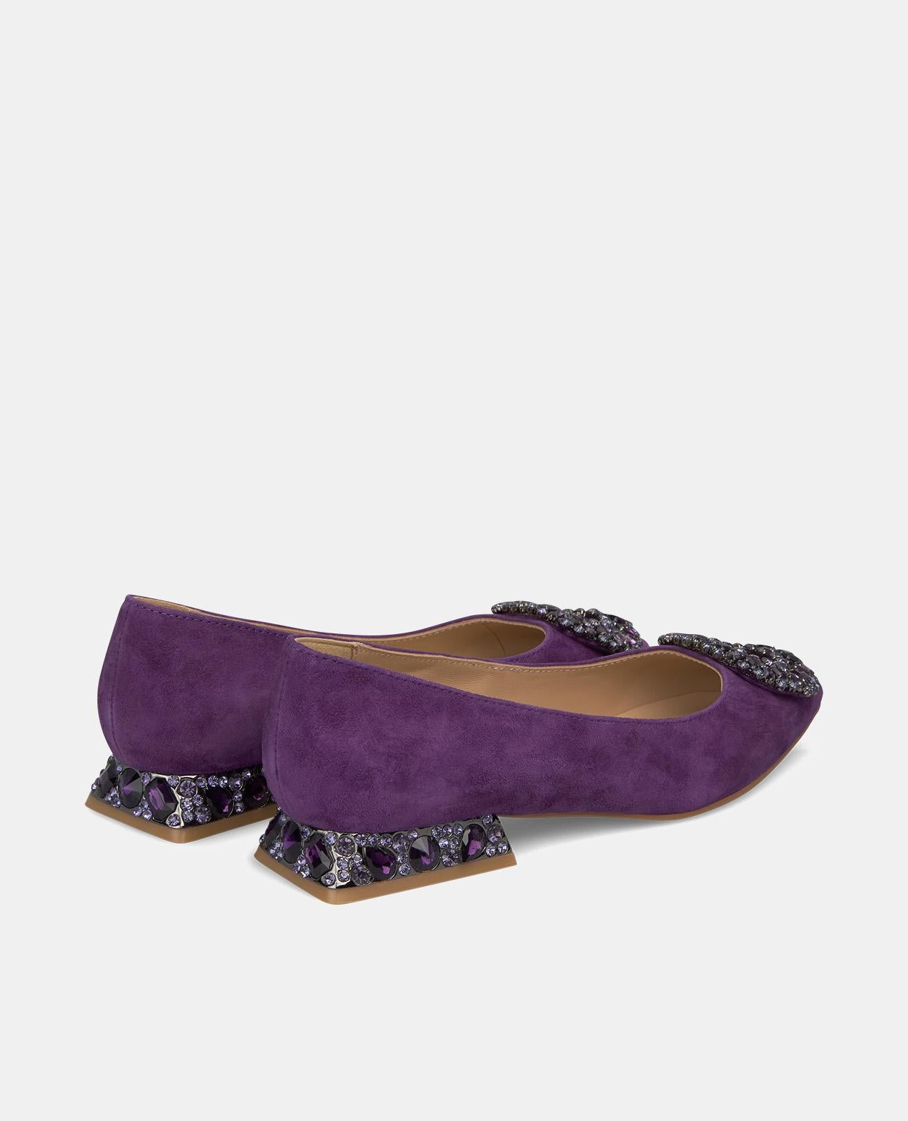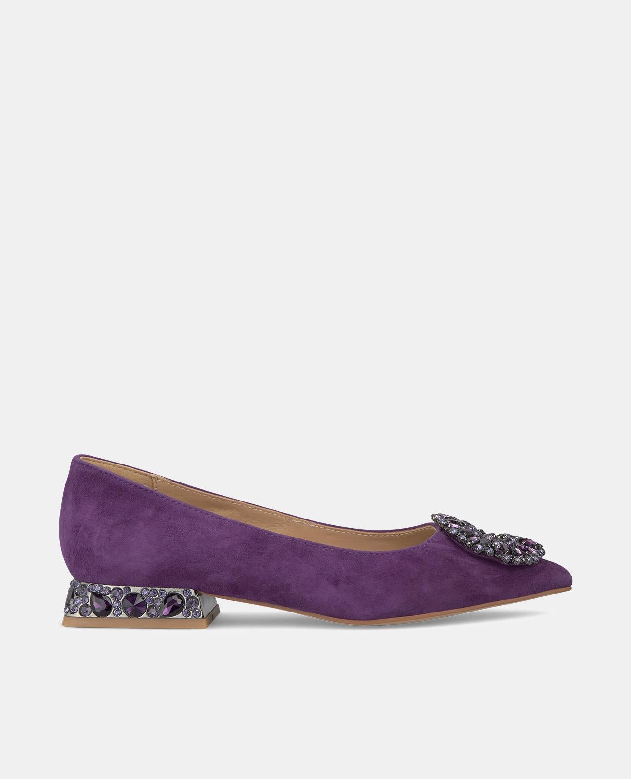 Sapatos de bailarina planos para mulher com biqueira redonda e ponta do pé. O calcanhar está coberto de strass. Fabricado em pele e a altura do salto é de 2,2 cm.